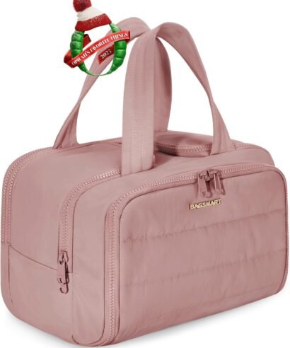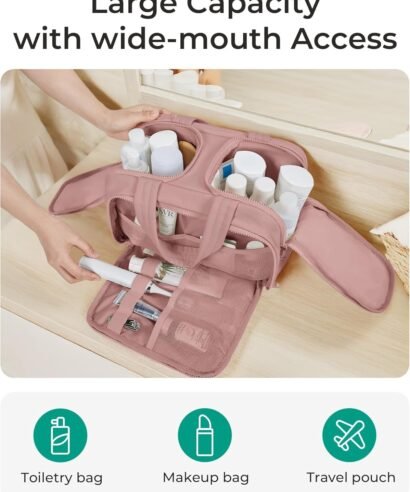 Travel Toiletry Bag, Lightweight Large Wide-Open Toiletry Bag for Women, Puffy Cosmetic Makeup Bag Organizer with Handle for Accessories,Essentials, Toiletrie, Dark Pink, Puffy