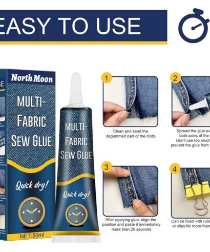 Quick Dry Multi Fabric Sew Glue, Cloth Repair Sew Glue Fabric Sewing Adhesive, Ultra Stick Fabric Glue for Jeans Printing Pants, Cotton Flannel, Denim Leather, Fast Dry