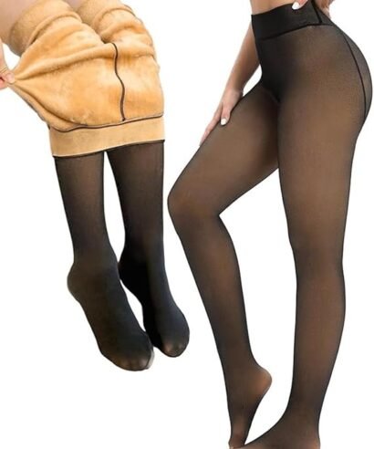 Women Skinny Mid-Rise Soft Winter Warm Fleece Lined Leggings – Thermal Stretchable High Waist Slim Fit Pantyhose for Cold Weather | Velvet Inner Layer Warm Stockings for Women