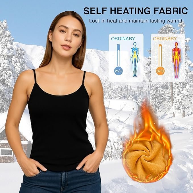 Dangfly Thermal Velvet Camisole for Women | Stretchy Slim-Fit Innerwear Body Shaper Vest | Warm Winter Undershirt | (Free Size: Fits S, M, L | Bust 66-130 cm | Suitable Weight: 40-65 kg)