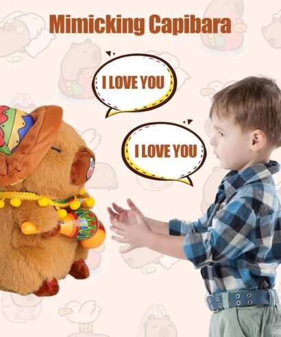 - 【Repetition and singing function】Our Talking Capybara Plush Toy, it can talk, sing and dance. Singing 15 English songs, Dancing Capybara Stuffed Animal can repeat everything you say, whether you are laugh, sing or speak. it can repeat the surrounding sounds. It can change the original timbre of the sound and make it interesting, high-pitched and lovely.