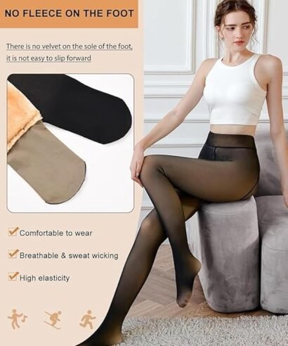 Stay stylish and warm this winter with Women’s Skinny Mid-Rise Soft Winter Warm Leggings. These fleece-lined leggings are designed to look like trendy sheer tights but feel like thick, thermal leggings inside. The velvet fleece lining traps heat effectively while the stretchable nylon-spandex fabric ensures comfort, flexibility, and a perfect fit for all body types. The mid-rise design offers gentle tummy control, giving you a flattering and smooth look. Whether you’re dressing up for a night out or layering for daily wear, these thermal winter leggings are a must-have in your cold-weather wardrobe. Pair them effortlessly with dresses, skirts, sweaters, or boots for an elegant and warm winter look.
