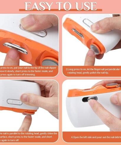 Electric Automatic Nail Clipper,2 in-1 Electric Nail Clipper and Nail Polisher, USB Rechargeable Suitable for Babies,Women Manicure,Kids, Adults, Electric Baby Nail Clippers with LED, Safety Fingernail Trimmer - Orange