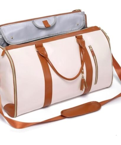 2-in-1 Convertible Leather Garment Duffle Bag | Luxury Travel Garment Bag with Shoe Pouch | Foldable Carry-On Suit Travel Bag for Women