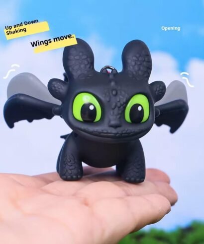 Dragon Keychain Toy with Moving Wings and Light, On Off Switch, Black Color (Night Fury)